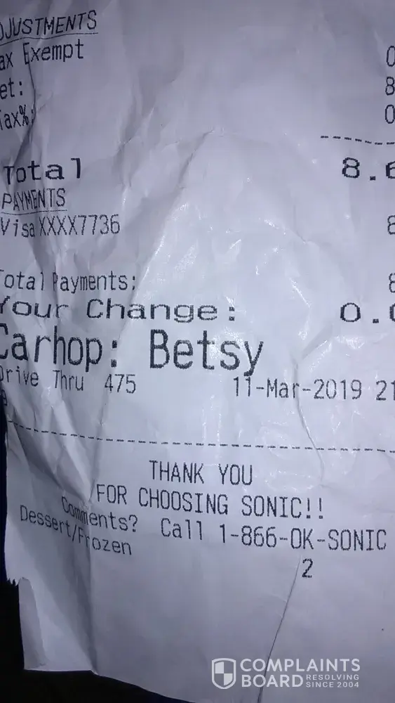 Hello on 3/10/2019 me and my family of 5 went to this sonic location I ordered our food it was cold when we got it we waited over 30 minutes for our food. We will never be back to this location. The staff was not friendly the server was victoria we are all very unsatisfied with the service on the order of chili cheese fries there was hardly any chili or cheese. Our order was $25.18 and to us it was a waste of money! I hope actions will be taken instead of saying they will be and not doing anything. My brother and dad even had to ask for their drinks because they wasn't brought to us. Upset customer robyn