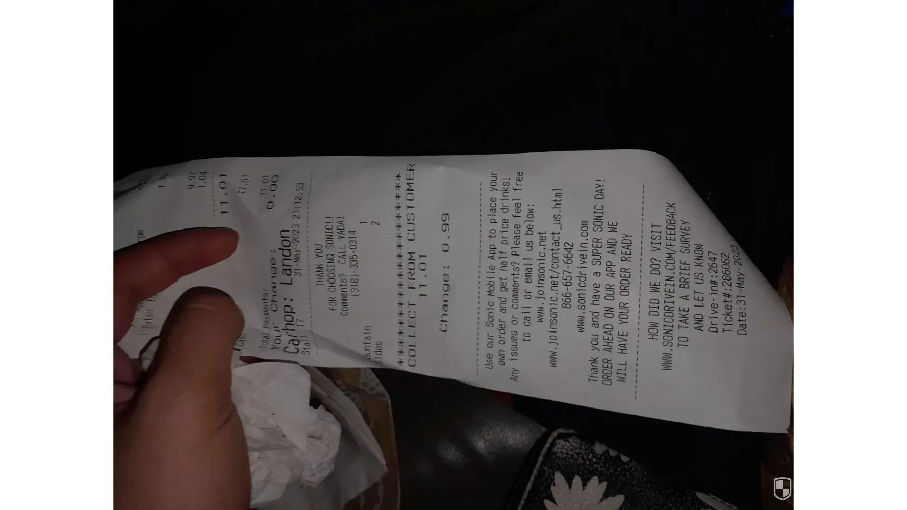 5-31-23 9:12pm in Oakdale LA I ordered some food (after them STILL being under boil advisery, and being out of a couple things) only for my car hop Landon kept the change. I specifically said I didn't wanna tip bc of the tone of voice and took almost a full dollar. As someone who has worked in many fast food and restaurants it's common since and respect not...