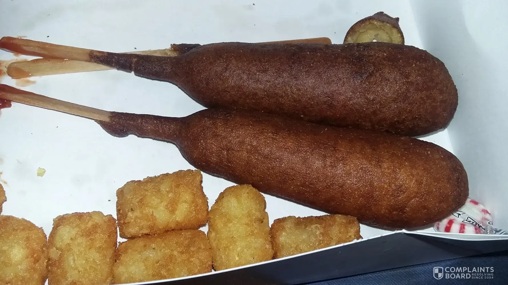 My family, and I went through the drive thru to order a late night dinner for ourselves. Customer service during this time, was good. After we get our food, we get home and we are all hungry and ready to eat. My husband's and my daughter's food looked good. I opened my dinner of 3 corn dogs and tater tots. All 3 of my corn dogs were burnt from being fried to long. I tried eating one, and it had that burnt flavor to it. I was not able to eat the other 2 corn dogs. I had to end up making me a grilled cheese sandwich at home. I was extremely confused, as to the employee who had not only cooked the corn dogs, but also the employee who bagged the food, and could look at the burnt corn dogs and with no concern that they were given to a customer. I was/am completely baffled to why this was considered good food.