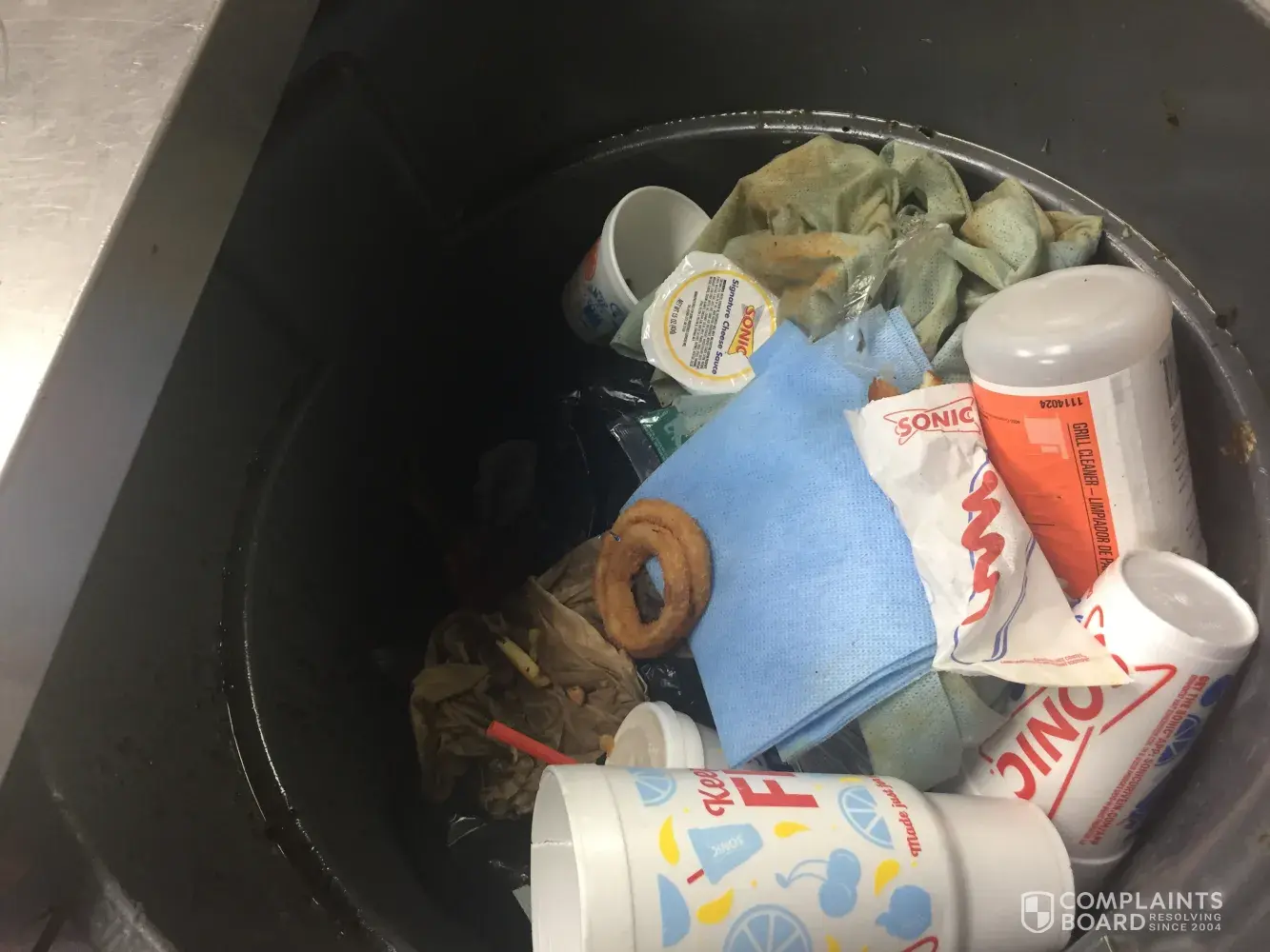 This place is very nasty an as a former employee I thought I share how nasty (sonic drive in) in Orlando Florida 32819 is an how much they don't care about weather there customers is served healthy good quality food all picture you see is pictures of me coming in the next morning from there closing very nasty an this needs to be addressed as a general manager she should've took care of the problem but instead she come an go when she wants never on her schedule time an leave her managers to struggle her name is Maleah the general manager a ex convicted she look just like that tattoos all over her like a gang banger not a good look for Sonics nasty attitude the store always runs out of different thing the store barely pass the health expections due to us not have sanitize dishes dirty why are they on the clean dishes grease straps not dumped over flowing on the grill the trash not tooking out over night the hot dog roller not clean at all just felt as is grill grease pan filled never dumped the floors this place is going to get someone sick there very nasty an don't clean this is a problem