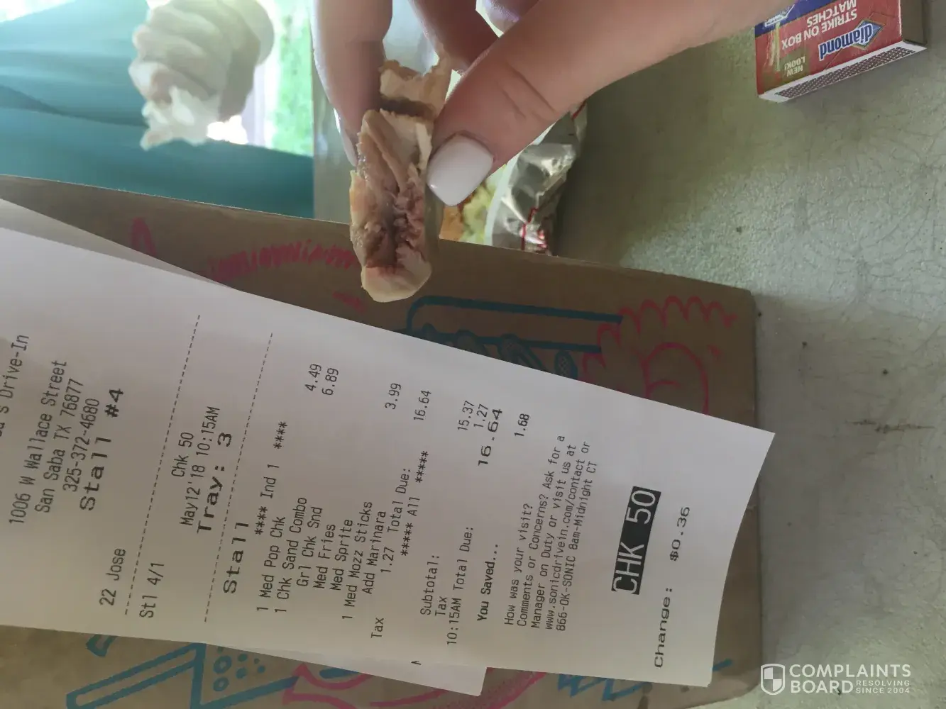 My boyfriend ordered a girlled chicken sandwhich, after eating most of it looked he realized it was goozing blood. The manager at the Sonic in San Saba TX said it's precooked, so I guess that means cooked twice (hopefully they recook the chicken before giving it to us) and there is STILL blood in it. Really? I've had food posioning from them before that's why I don't eat there.