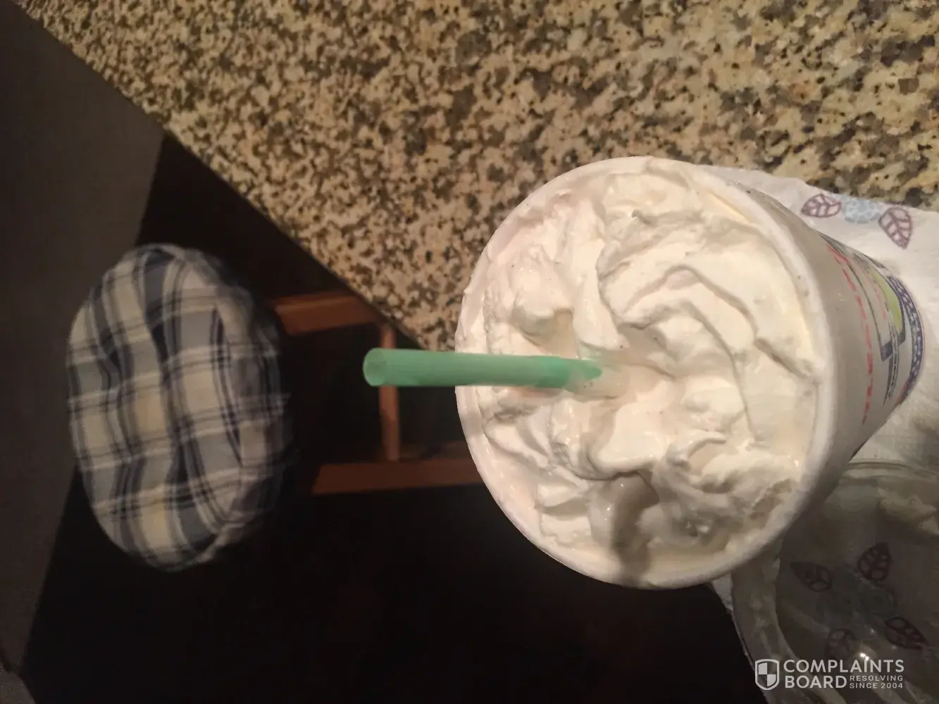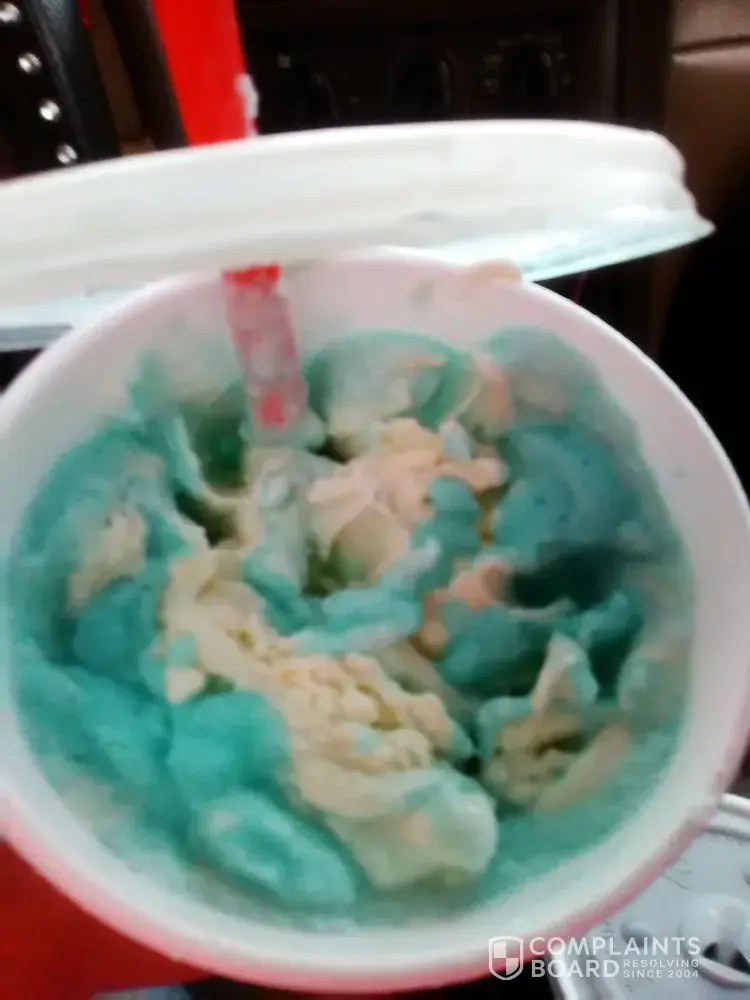 I was drinking a rainbow blue raspberry slush with extra nerds and everything seemed fine when i was drinking it. Then I took the lid off to eat it with a spoon because there were so many nerds (a good thing) and there were weird little things all mixed in the drink. It looked like little pieces of fabric or thread or something. There were tons and tons of them not just like a fluke little piece. I'm very upset because I don't know how much of it got through the straw before I noticed and what it was! Please get back to me with what it was because i'm kind of scared.