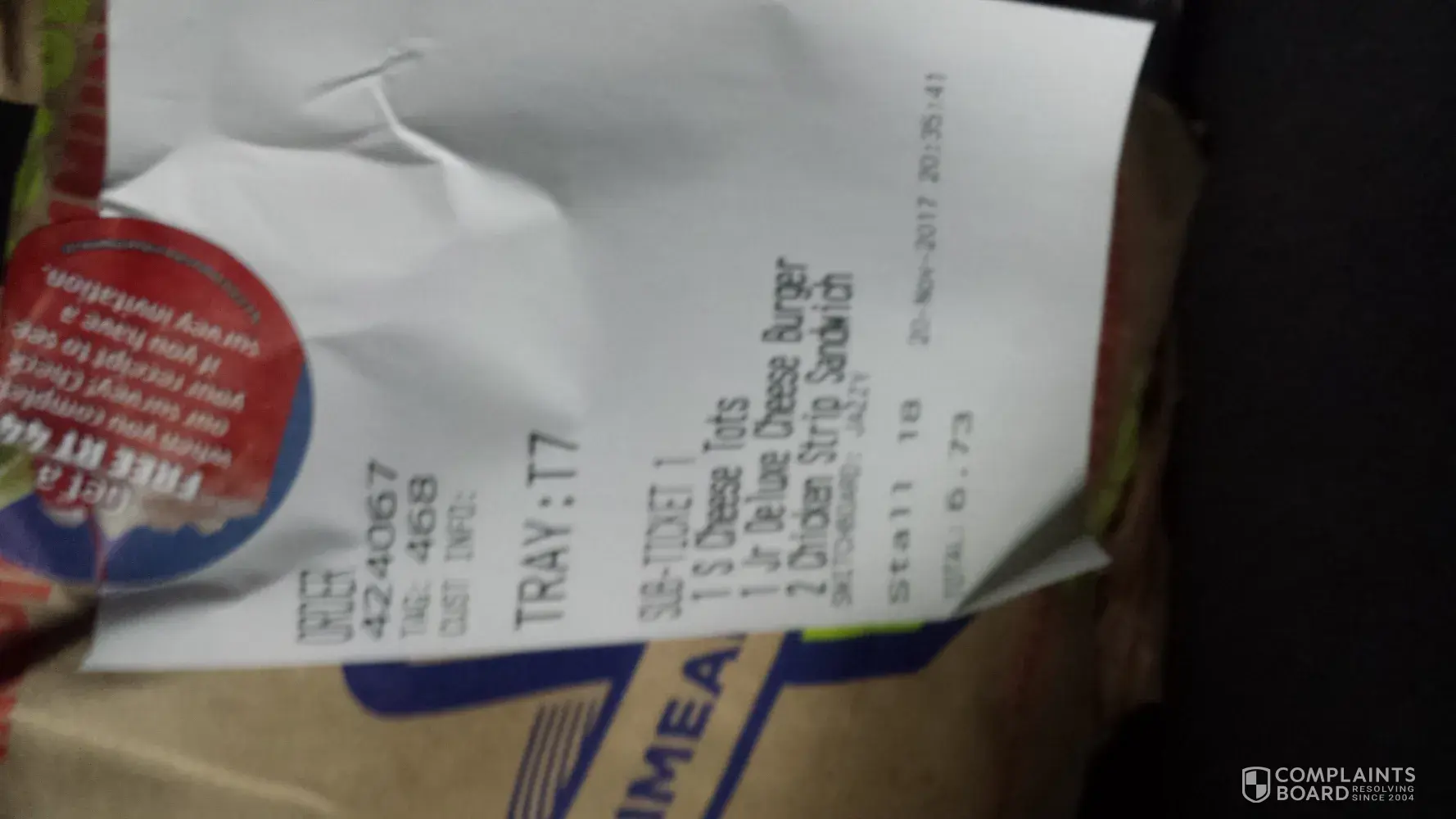 I am complaining about service and food quality
