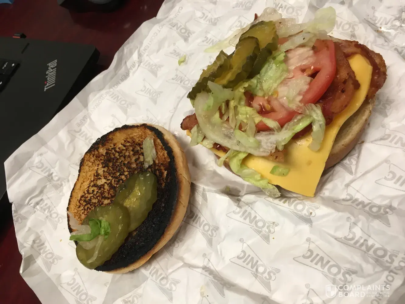 I went to sonic to get a deluxe cheeseburger w/bacon. got it back without bacon. I sent it back in to get bacon. when I got back to my office. i realized there was a hair on it. I had to go back and ask for a whole new one since I had already paid for it. I told the clerk the situation and she just said OK send it back and didn't even apologize. I got the burger back and the bun was stale and burnt on the underside. the burger was half the size of the bottom bun and the cheese was cold as can be. I would like a refund of my money and to let the company know that I will never go back there again. and neither will my family. they have just lost long time customers because employees there do not have the decency to deal with this. I also have pictures of the 2nd burger sent out to me. I hope I dont get sick from this because I will let you know