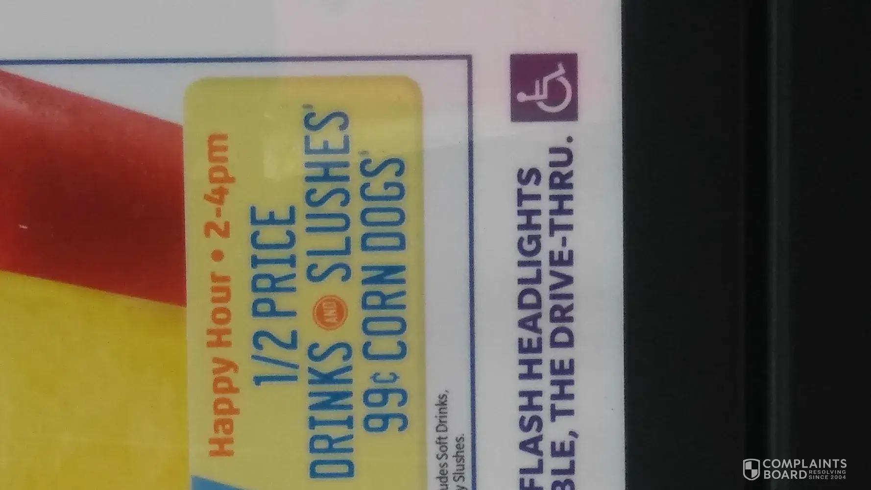 I entered the Sonic on Walnut st at 3:00pm. I asked the lady slushes and drinks are 1/2 off correct she says yes. So I ordered the ice cream slush. I was told they are not half price even though they are a slush. I don't understand. Either the slushes are or are not half price. The sign said 1/2 price slushes between 2-4. If you want to eliminate a specific slush your advertising should state as such. But it doesn't so I believe you should honor the cream slush along with all others since it is not excluded. I spoke with the manager Todd he was very professional however I did not get the result I wanted which was half price on my drinks but he did at least hear me out.