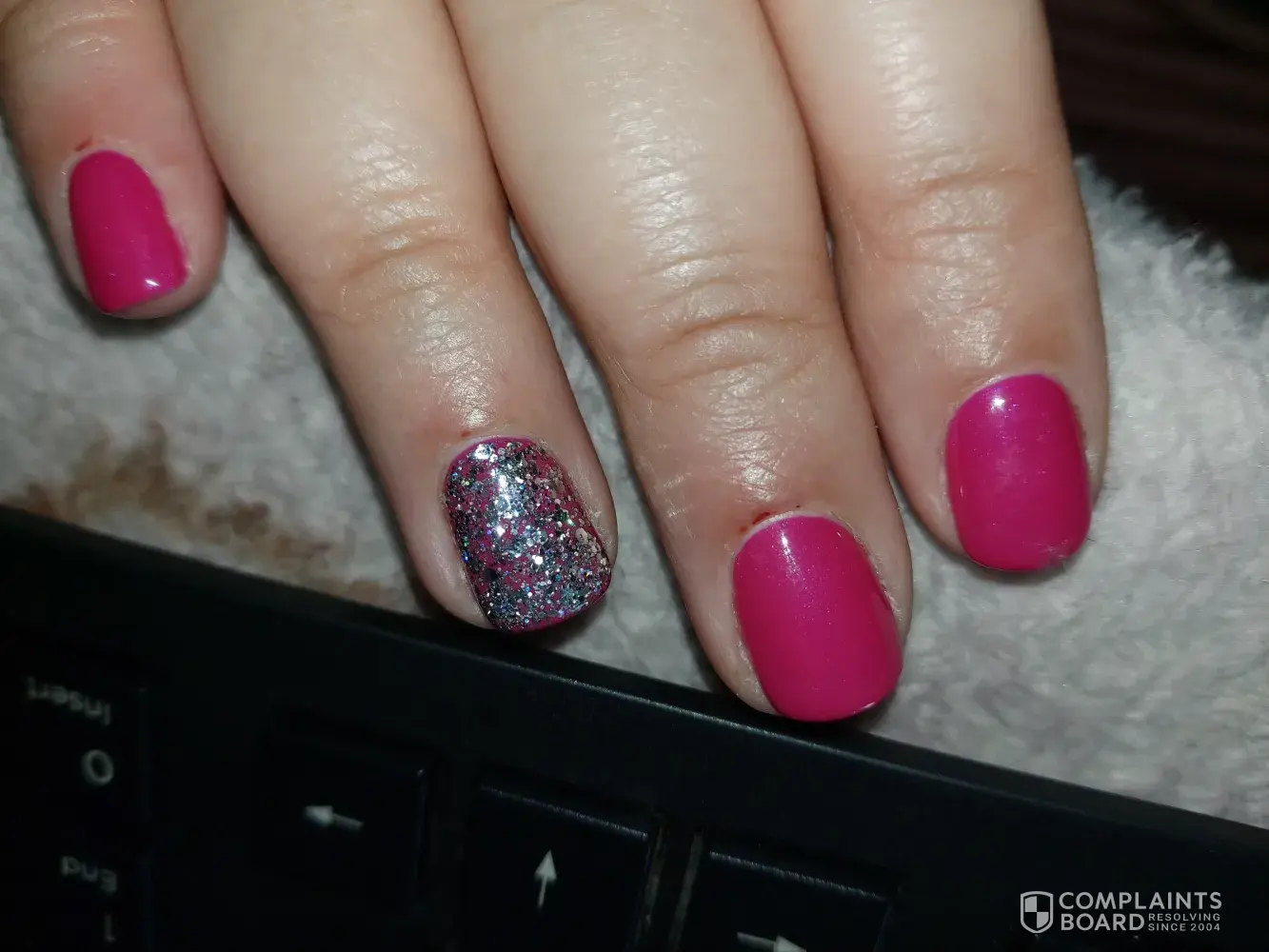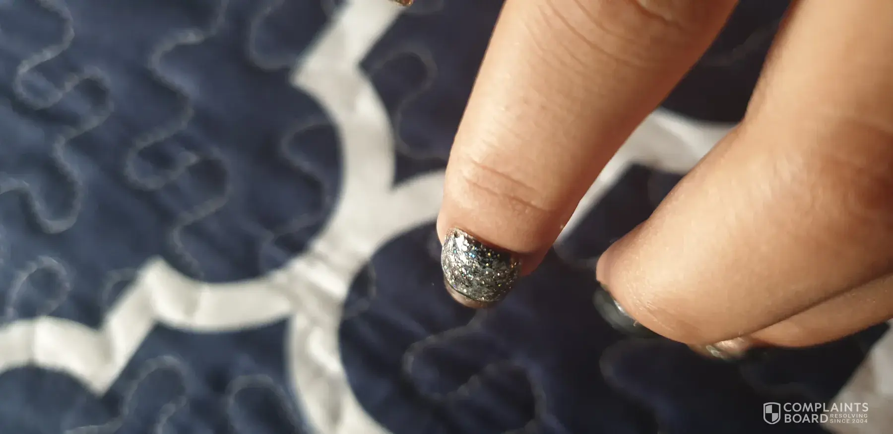 Not to mention the broken nail after I told her after cutting the nails about the chip and she said no its not broken, she covered it with nail polish, got home as I took a bath that nail kept on hooking my face cloth and that chip is a broken nail and more ugly