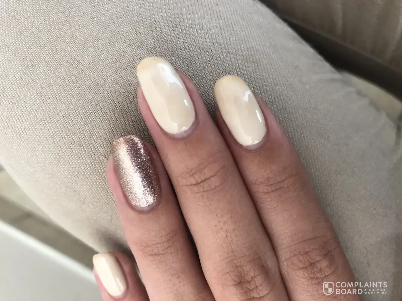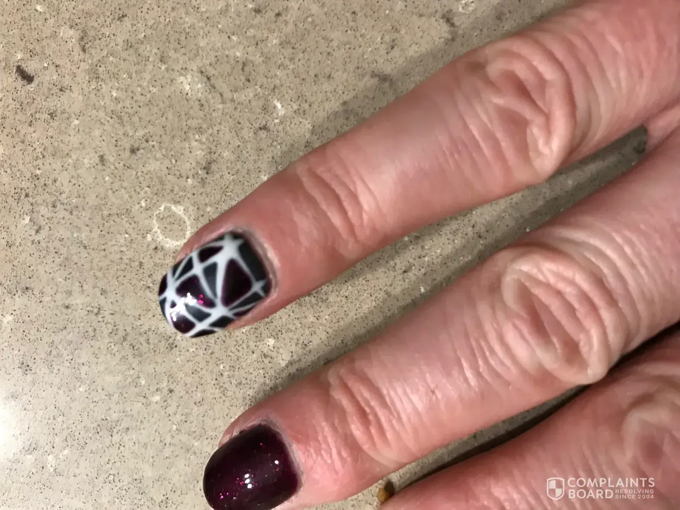I had my nails done on the 21st of April 2018 and in a weeks time the nails discolored, chiped on the edges and the tips they applied broke away from the product. I am also upset that the person who did my nails rushed it leaving my nail unneat and lumpy.