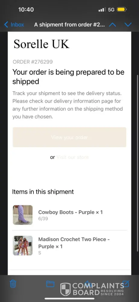 Disappointing Experience with Sorelle UK: No Delivery, No Communication, No Refund