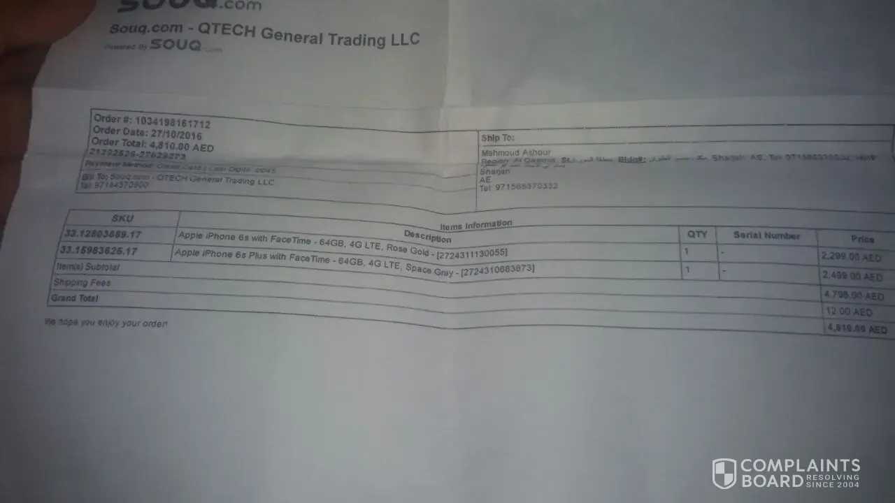 I have argued with them that, I have already given change address and mobile number request on 25th March, after one hour I have placed the order, and they wrongly delivered to my old address. They promise also that they will deliver to Dubai address on 28th March, but they returned the items to Souq.