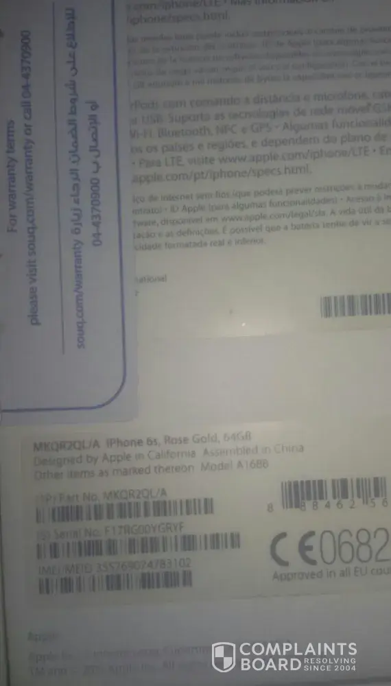 I bought from Souq Dubai I phone 6s from 27/10/2016 order number [protected] and I used it few months ago, after few months of using it the battery appeared no to charge the mobile anymore and became bigger in size that I thought it may get out of the mobile phone