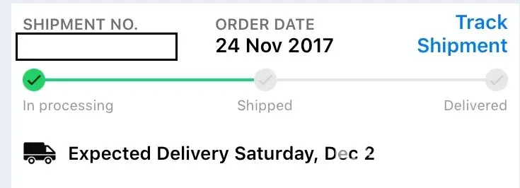 -Order Placed on: 23 November 2017.