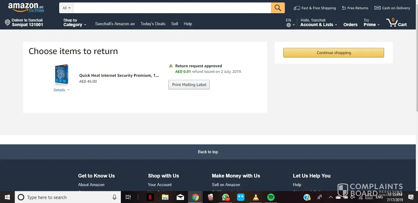 I, Sanchali Bhowmik had ordered an antivirus software - Quick Heal Internet Security with Order ID: Order ID: [protected] which was delivered on 28th June. But I issued for refund as the product was damaged. While returning it, it was returned properly. The delivery man also had issued for a refund on 2nd of July. It has been 10 days and I have not received any refund on my bank account.