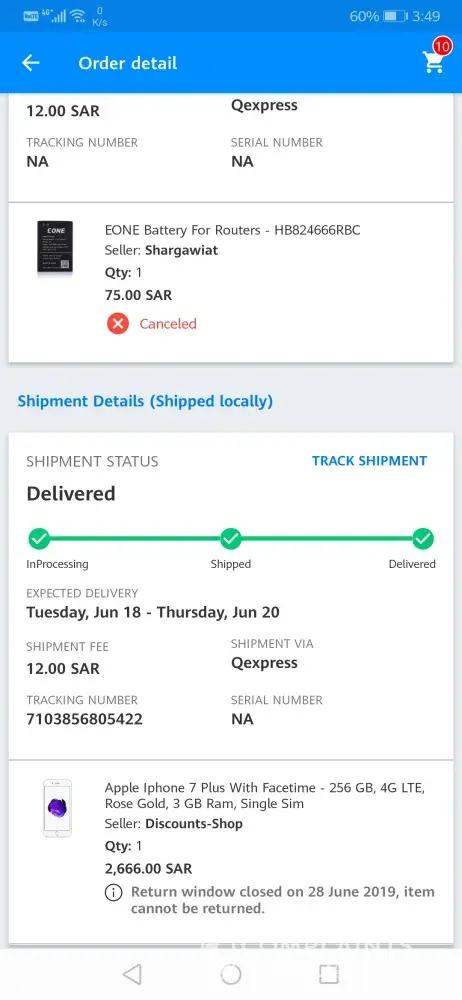 Shipment 1 of 1 from seller: dod_uae - Will be shipped by Qexpress Samsung