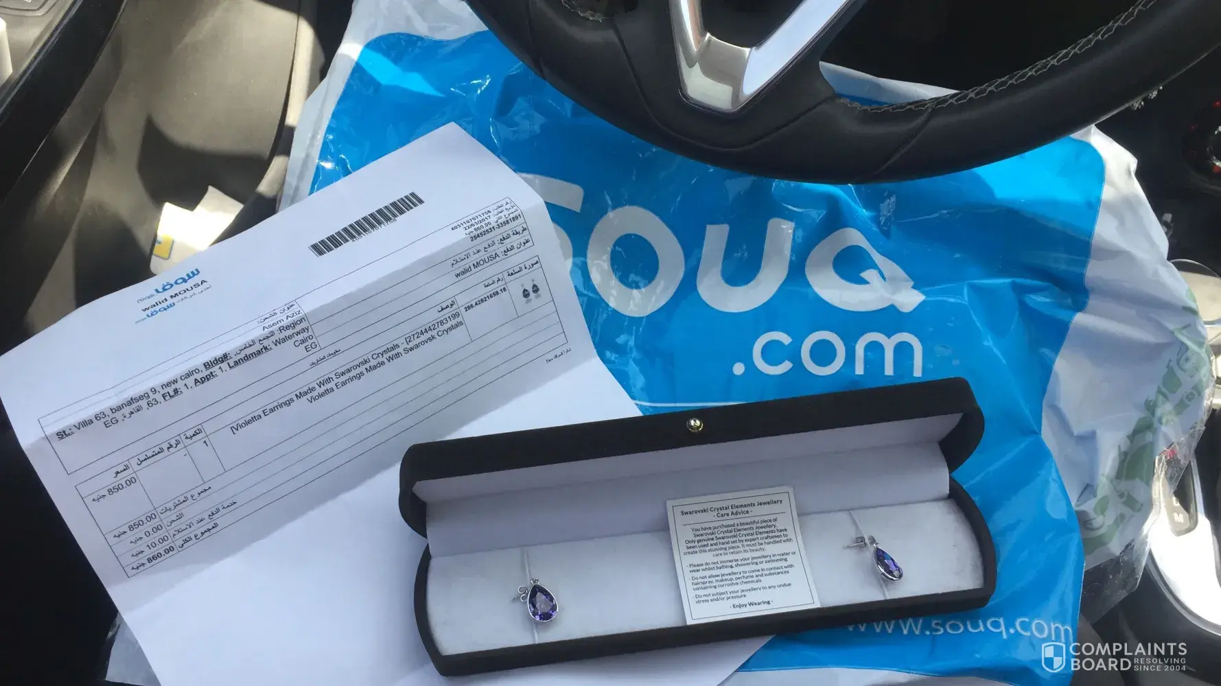 I had just purchased earrings for my gf from Souq.com for the first time. The description of the product stated "Violetta Earrings Made with Swarovski Crystals", Brand Name: "Swarovski".