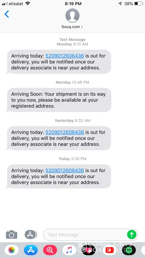 2nd the address is wrong so please connect souq. Com not the shipping to confirm iam call souq and they confirmed on address as per address on application so we make a ticket and the order will deliver tomorrow for sure noting that iam received 3 msg that the couriers on way on 5 may / Tuesday 7 may and today