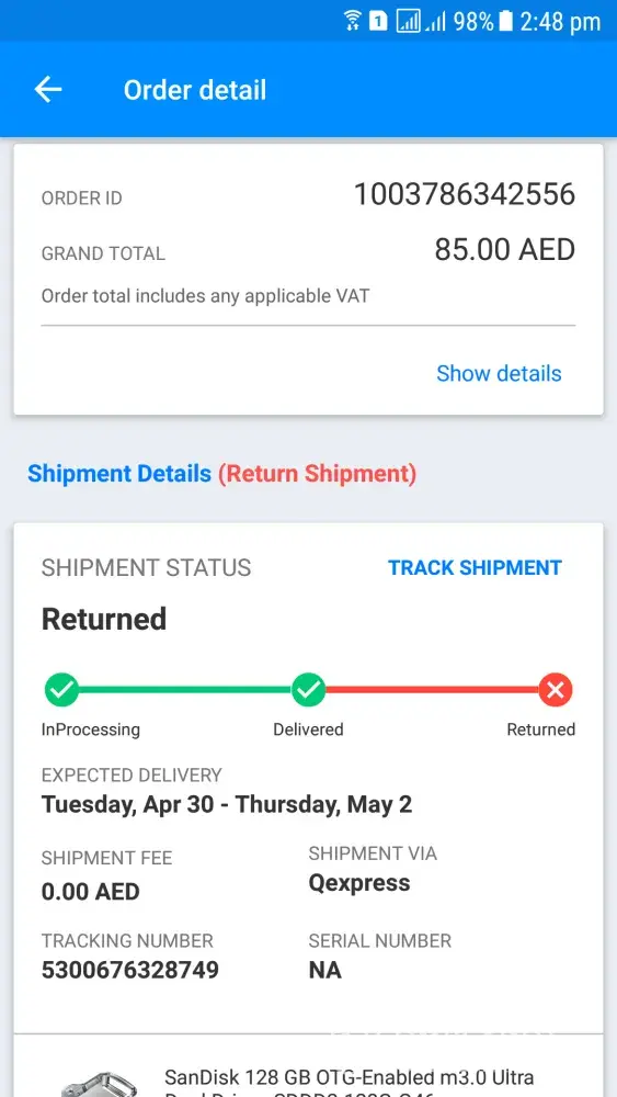 Purchased OnePlus 6 mobile phone on 4 Aug 2018 with 2 years souq warranty, From last month I was facing issues with device, as frequent restart screen flickering, apps auto signout... so i requested return/refund on 23rd April 2019.