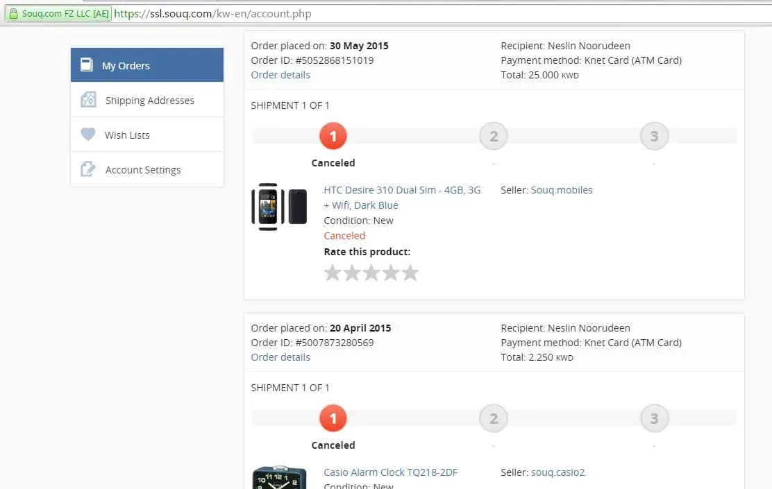 Souq.com is the most unprofessional e-commerce site i have ever dealt with. Placed an order for an HTC Mobile but when it was advertised as "in stock" on their website and after 3 days the order was cancelled by them with out informing ! ...Apparently they have suddenly realized after 3 days that the item is out of stock.The same happened with me when i ordered an Alarm clock and after 4 days it was shown as cancelled... Cheating is the word that comes to mind.