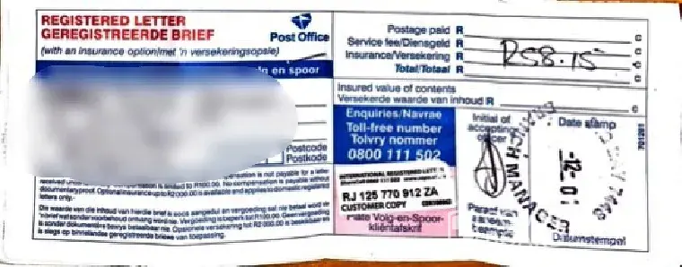 South African Post Office [SAPO] Documents