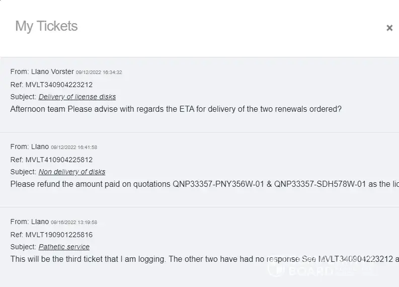 Support Tickets logged online: MVLT370307222709, MVLT480308221914, MVLT080309220615, MVLT330303222117, MVLT400311223022, MVLT520302222024