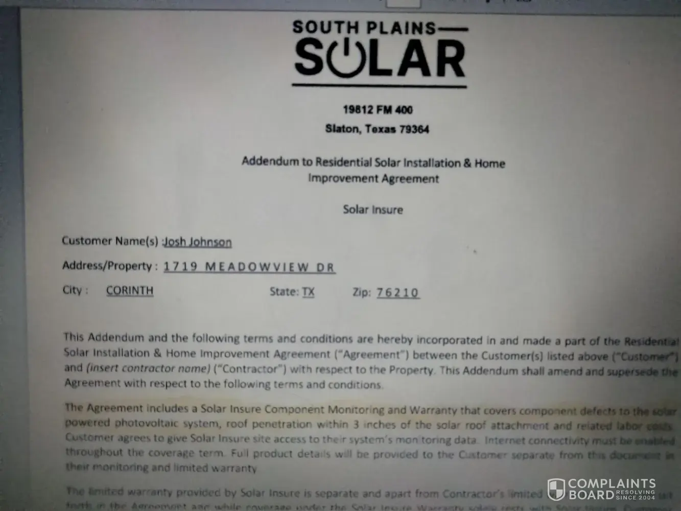Your situation sounds like a nightmare, and you definitely deserve better treatment. I hope someone steps in soon to resolve this issue for you, and that South Plains Solar takes responsibility for their poor service.