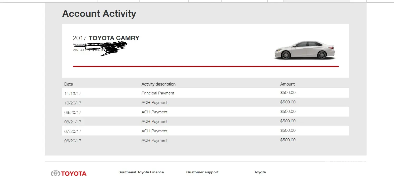Like so many "Customers" did you hear that word SEFT its customers - the people that keep you in work I am disgusted by this company. I bought a car from Al Hendrickson they lied about the finance rates to push me into their own finance system. I had to go to Europe for business for 2 months during which time I tried 3-4 times to make payments online and the website / system failed. No phone calls or help form the company, they would not accept any blame and I came back to a credit score that has gone from 820 to 690. I will take legal action against them for failure to provide a platform for me to give them money. I've never missed any payments in my life mortgage or other and have perfect credit. They did not work with me to correct an issue that ultimately lays with their own flaws. DO NOT USE THIS COMPANY and DO NOT USE TOYOTA IN HOUSE FINANCE.