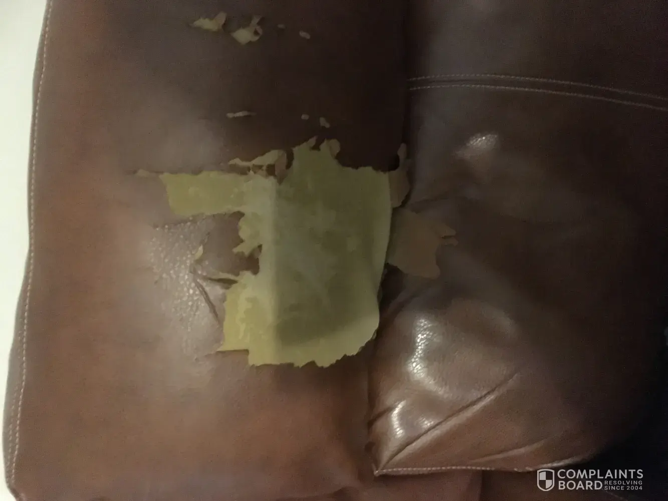 It looks terrible and is embarrassing, but I have no funds to spend on a replacement. Can't even get a furniture cover for this recliner. It's really a shame that the company doesn't offer some sort of credit towards another one or something. We initially considered buying a fabric recliner.