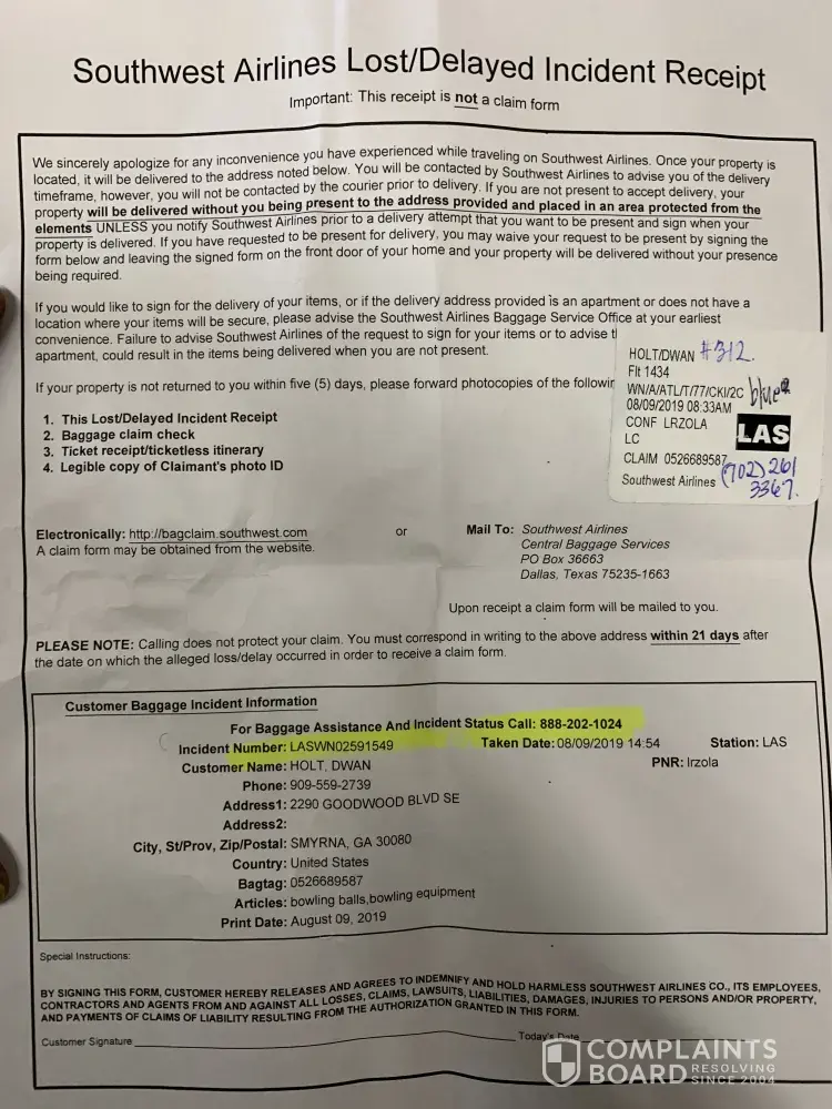 Southwest said it was not their problem as they did not take the bag. I asked if I could pay someone to come get the bag and I was told no. I called Customer Relations next and they said the same thing. I must return the bag immediately. I again let them know I'm on a very tight schedule and cannot return to the airport right now as I'm working. What are my options. I was told to return the bag as it's not their mistake.