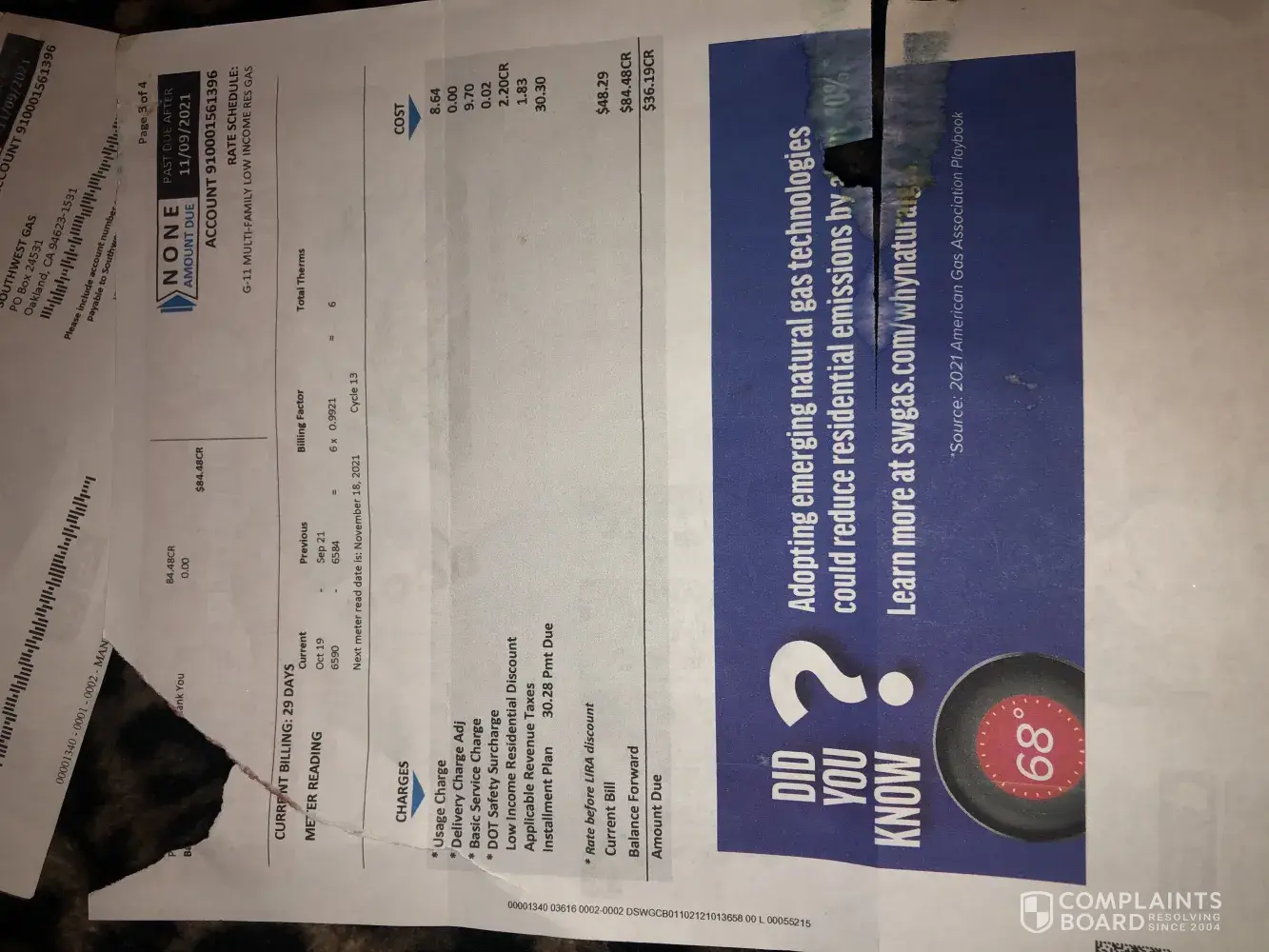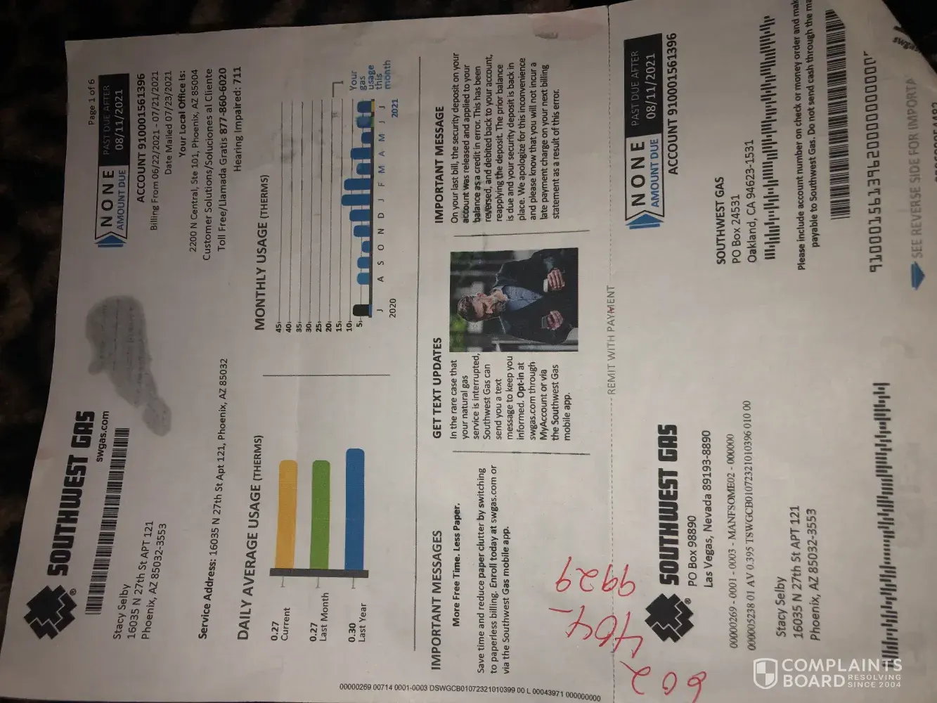 I responded to other complaints re: paying SW Gas Bill earlier which indicated problems with paying SW Gas bill; indicates problems have been apparent for =/> 1 month.