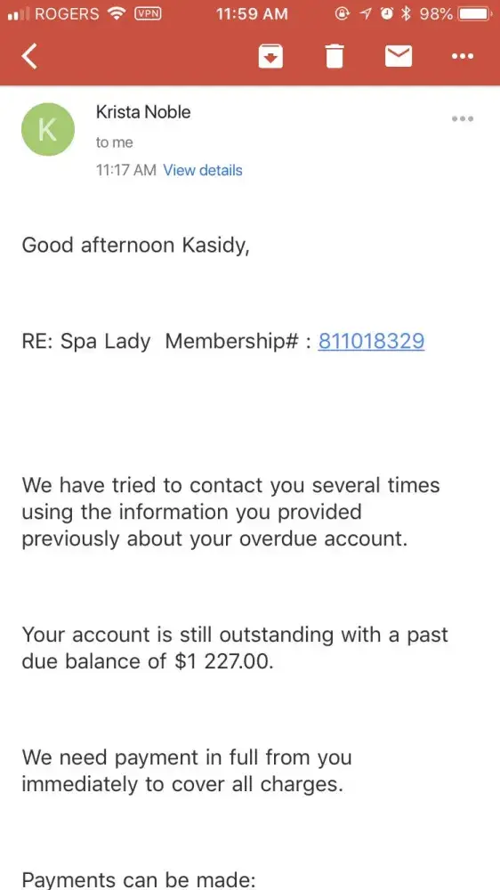 I moved away in 2017 &had an owing balance & by winter of 2017 I paid off the owing balance. I went in for a car & they said Spa Lady sent my stuff to a COLLECTION AGENCY! The lady said she took care of my account and shut it down 😡😡😡🤬 So not cool to not do a job properly and mess with someone credit. I unfortunately learned the hard way & after mentioning it to friends in Edmonton, they told me their crappy experiences with them.