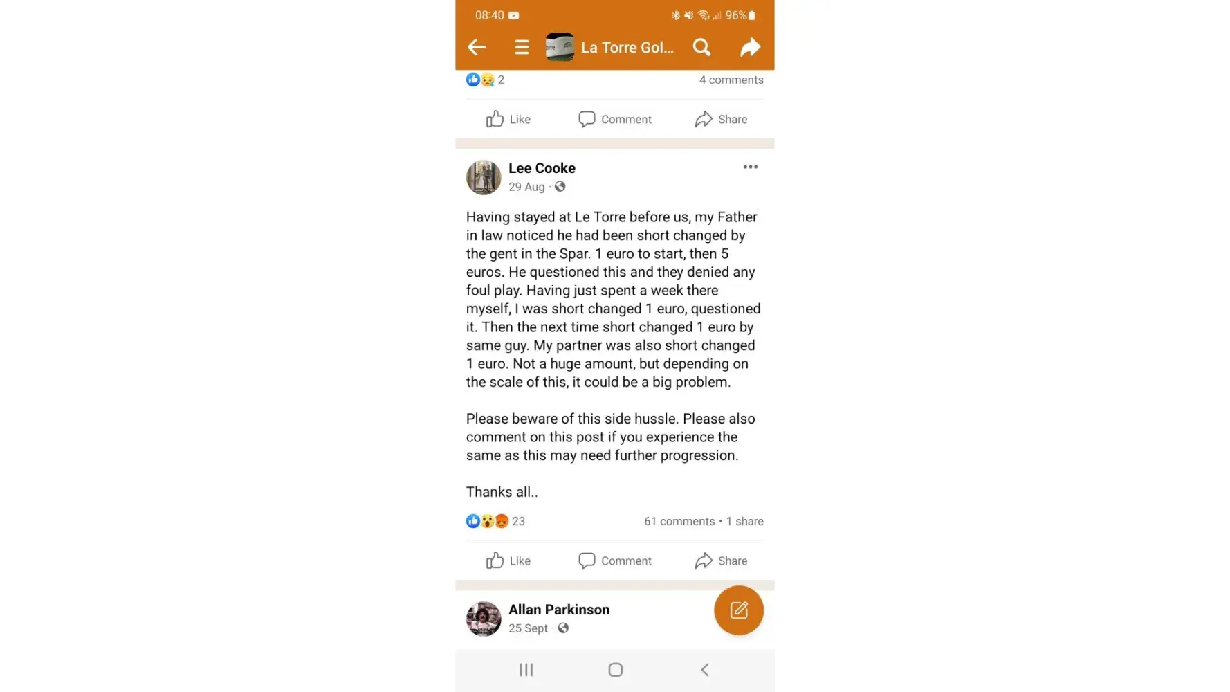 In the Spar at Le Torre Golf Resort. Staff on the till are consistently short changing people. I had this happen on multiple occasions during my stay and have also since investigated further to find multiple cases of this happening.