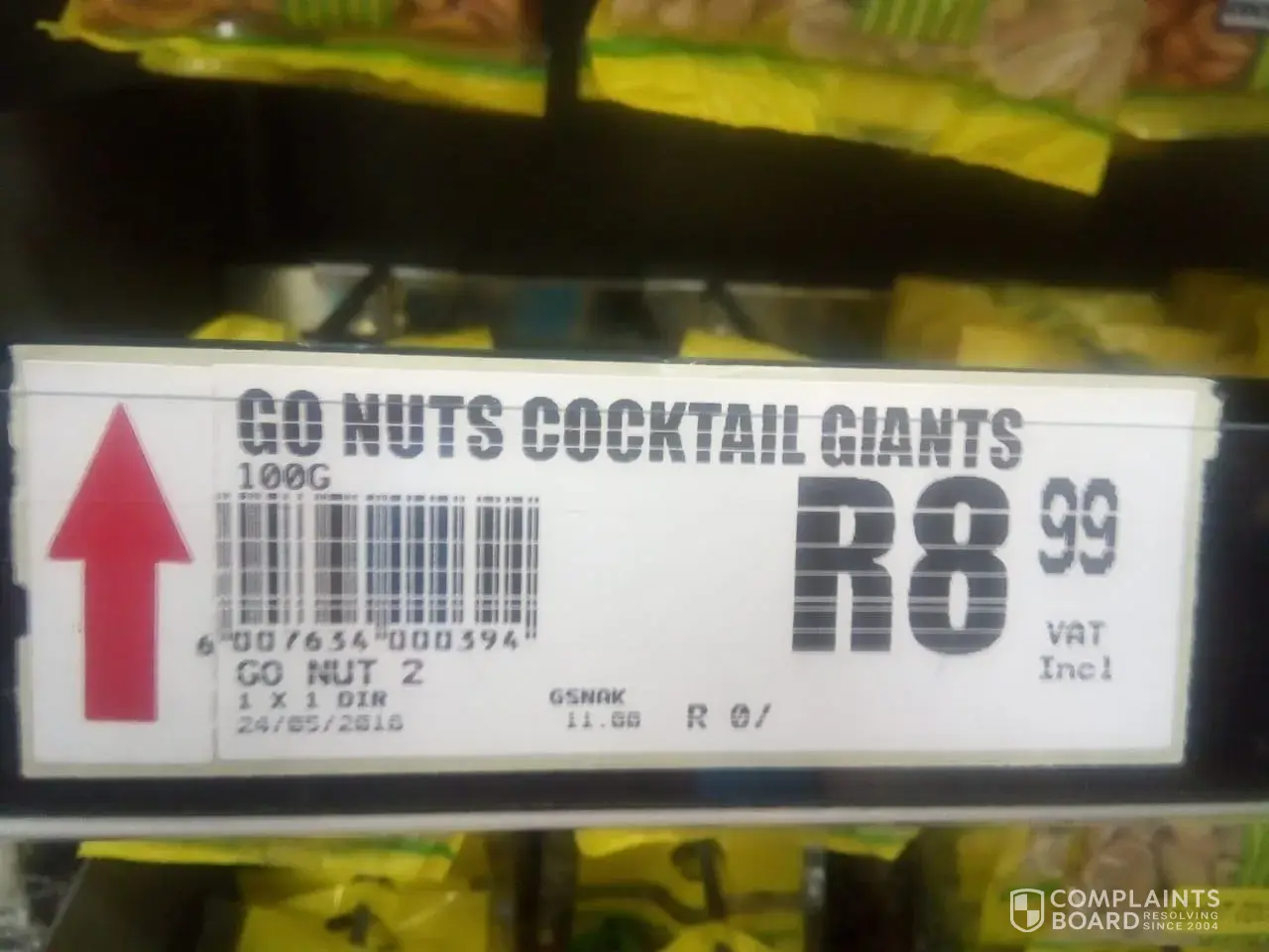 The" Go Nuts Cocktail Giant peanuts " which are marked on the price tag under the item, say that you are purchasing a 100g bag. when checking the bag, the bag is only 80g. When taking the 80g bag to the till and they scan it, it shows you buying 100g. I showed the management this and they agreed that it was wrong and would be fixed. One month later, I checked the same pricing and nothing has been changed. That's called theft.
