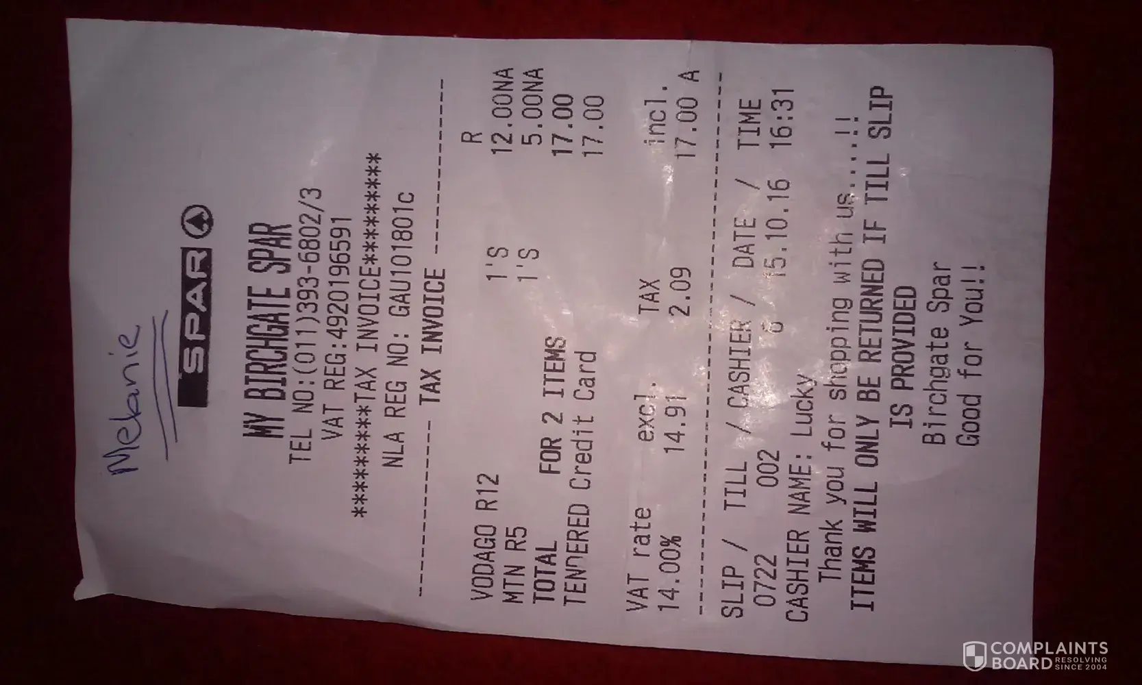 Firstly it is raining in Ventersdorp, secondly I don’t expect that the stuff I purchase from Spar to be bad or rotten so I threw my slip into the dustbin, which is now covered with other foodstuff.