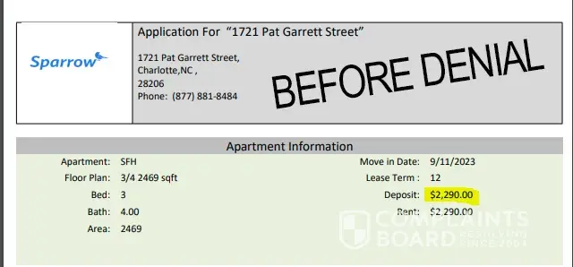 Sparrow Now owns the property so I have to believe they are not interested in renting it out, more so they are waiting to sell it and in the meantime collecting peoples application fees and then denying them in the meantime. Absolutely disgusting and deceitful business. They use so many third parties and their actual employees like their "local realtor" that lives in ATL doesn't actually know anything about the property and there is no chance the local realtor is licensed in NC or has ever stepped foot on the property. I reported them to Zillow and the FTC. If I do not get a full refund I will also be contacting the BBB. Wouldn't be worth the money but there has to be a class action lawsuit against them to shut this type of business down.
