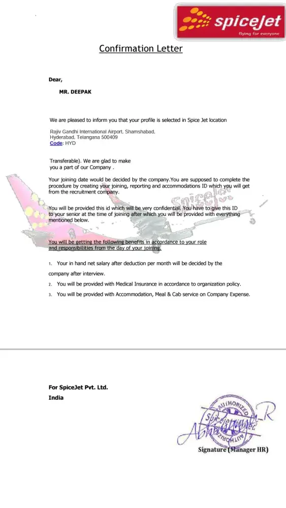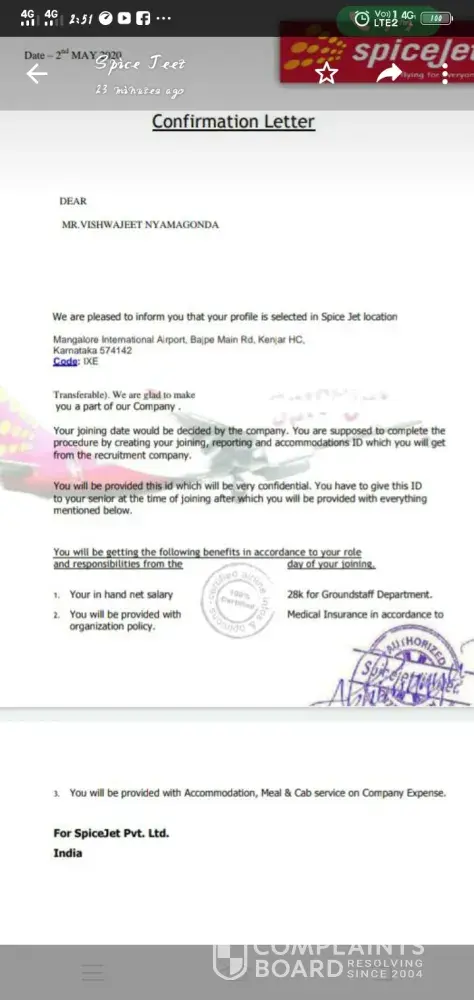I've lost about 5000 rupees for getting fake call letter from spicejet through an lady calling from kempegowda international airport bengaluru telling that we're hiring an ticket executive job at spicejet And also she emailed me refund letter, confirmation letter and training letter I've paid total 5000 to this fake recruiter
