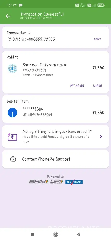 Payment not received - Ticket booked during COVID-19 - PNR: H6KPRY
