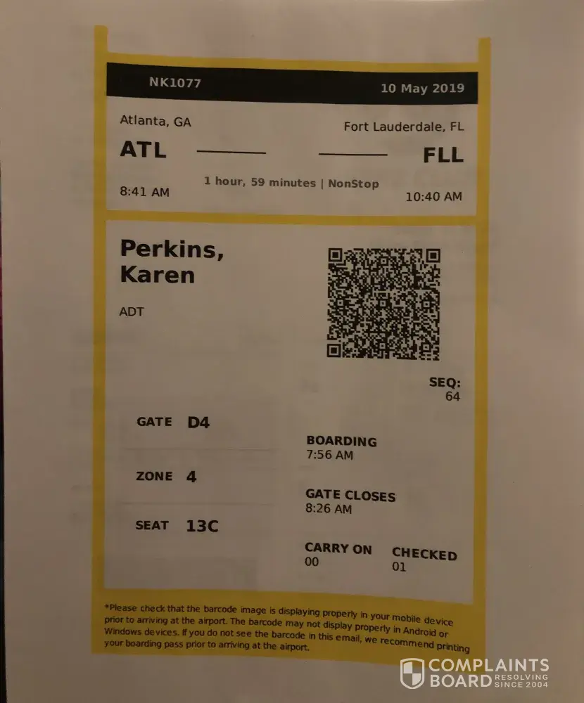 Please note: I flew with spirit airlines on july 19, 2018, confirmation code qeuinq.