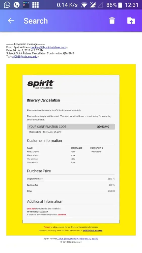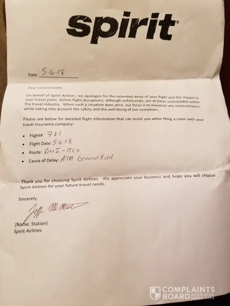 Spirit Airline customer service issue