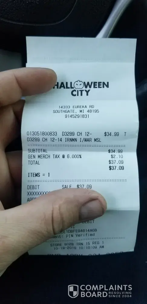 More Spirit Halloween reviews & complaints