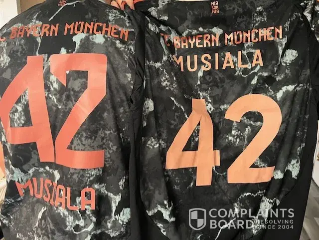 REFERENCE: Sports Direct SD40000117638708 - Adidas football shirt I purchased a Adidas football shirt from Sports Direct. At the point of purchase I paid £85 plus P&P. The football shirt is a Bayern Munich shirt from the German league. The players name is always at the bottom of the shirt. The team is located at top of shirt and number is central. They...