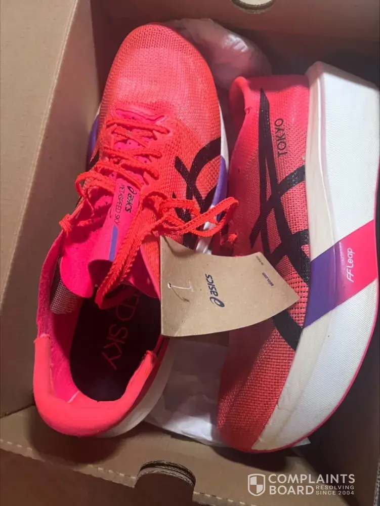 I purchased a pair of Asics Tokyo sky trainers, I bought them from Sports Direct online as a trusted business. These were purchased on Sat 20th Sept, these were delivered on the 22nd Sept. being they were new and needed to be run in, I left them boxed on the kitchen side until I had a short distance run in mind and the weather was nice so I wouldn't get...