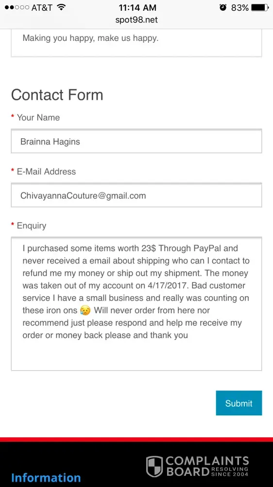 I placed an order for iron-on letters. They never sent a purchase or shipping confirmation. I wrote to their customer service and did not receive a response. DO NOT BUY FROM SPOT98 - they are not a legitimate company!
