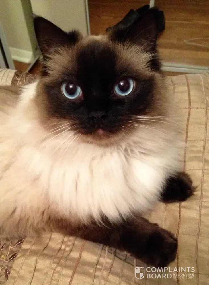 We purchased a 9 mo cat from Cindy in may of 2012 she was a wonderful living kitty until jan 2013 when she became seriously ill. She ended up having an infected bile duct also found out she had an enlarged heart. Got better from that and in April she become ill again. Rushes her to the specialist found enlarged heart and swollen lymph nodes, 5 days later we had to put her down her entire lymp system was swollen. We are still waiting for the results from the necropsy. But it is pretty sad that we lost her after having her less than a year. Cindy has yet to return my calls or emails because the vet is requiring me to tell her