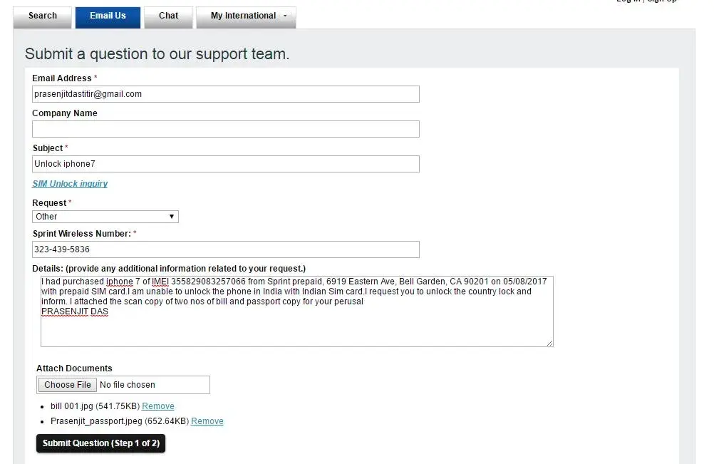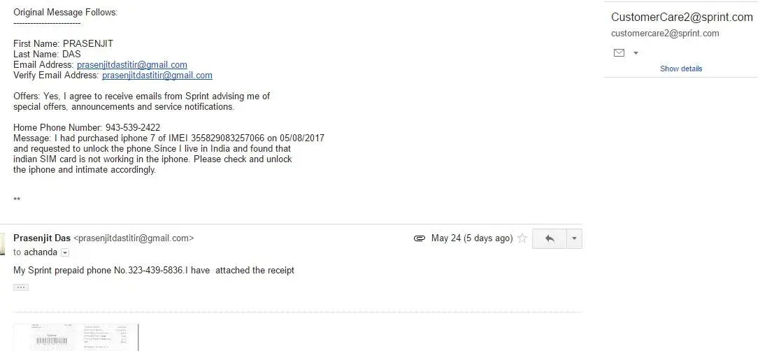 I am an indian passport holder. I was on a vacation in the usa along with my family from 24th april, 2017 to 9th may, 2017. On 8th may, I visited sprint prepaid store, 6919 eastern avenue, bell garden, ca 90201 with the intention of purchasing an iphone 7. At the store, salesperson mr. Miguel c assisted us in purchasing the iphone. Before the purchase I had mentioned that I was a tourist and that I was returning back to india the next day. Also I had provided my passport as my identity proof. During the purchase he had not mentioned anything about a prepaid sim card that came along with the phone. I was charged $45 as activation charge which I had presumed was the unlocking charge. After coming back to india I tried to use my phone and found that it was locked by sprint carrier.