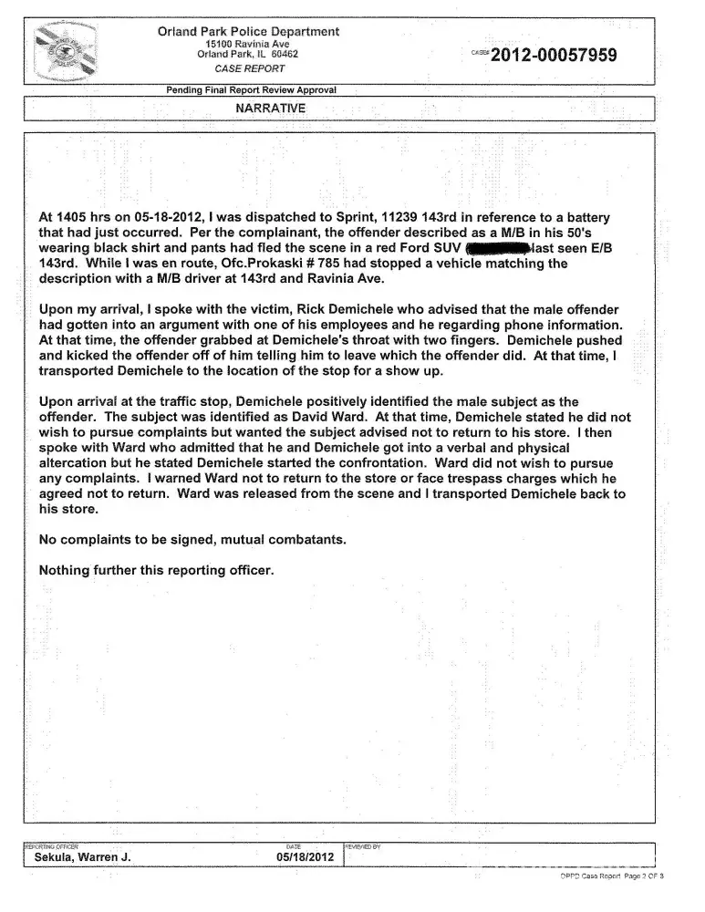 Sprint corporate claimed they could not verify this, despite a police report and video tape. They refused to take any action, giving their employees a green light to attack black people or anyone else they choose to. Why does Sprint wish to cover up the acts of their racist employees? In Orland Park if a black man gets pulled over for this and is just told to go his own way, you can be sure he didn't do anything. Judge for yourself