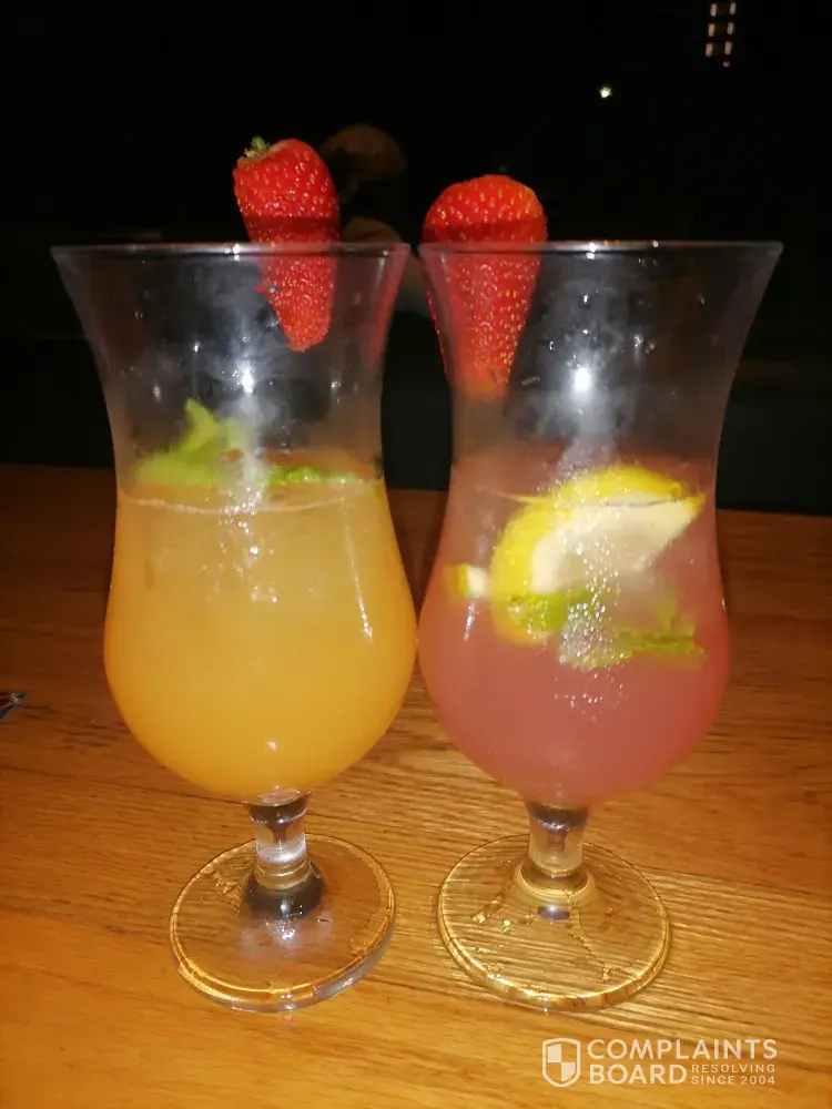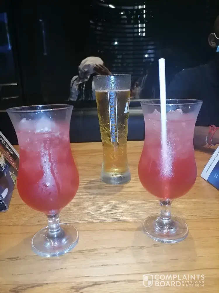 The other issue we had was with the drinks that we had ordered. The first cocktail we ordered was filled with so much of ice that we asked for the second cocktail to have less ice. Upon arrival of the drinks, we see that they have given us half a cocktail with the same amount of ice as the first ones we had ordered and they charged us the normal price for half the cocktail. We spoke to pilani again who stated ' in their training they were taught to only put 250 ml alcohol and fill the rest of the glass with ice as the alcohol was too strong'.. Could they not have put in more juice or something instead of serving customers half a glass.. It was very upsetting as we're paying r55 each and that's what we are served.