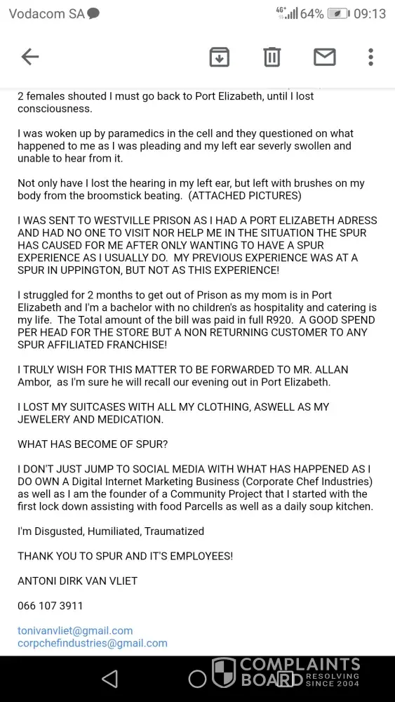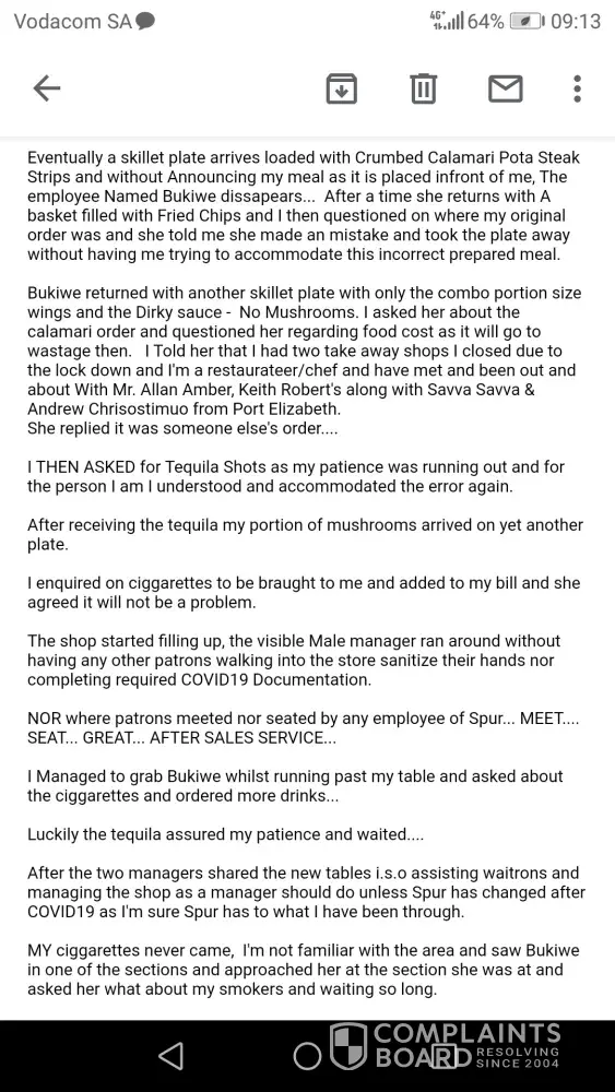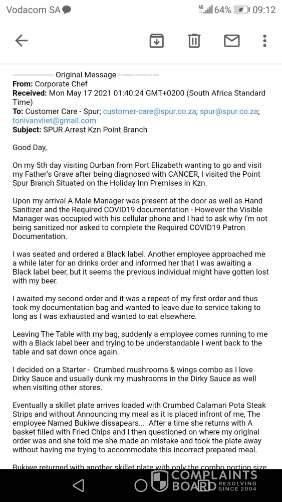 Please find attached the complaint sent To Spur Customer Care.