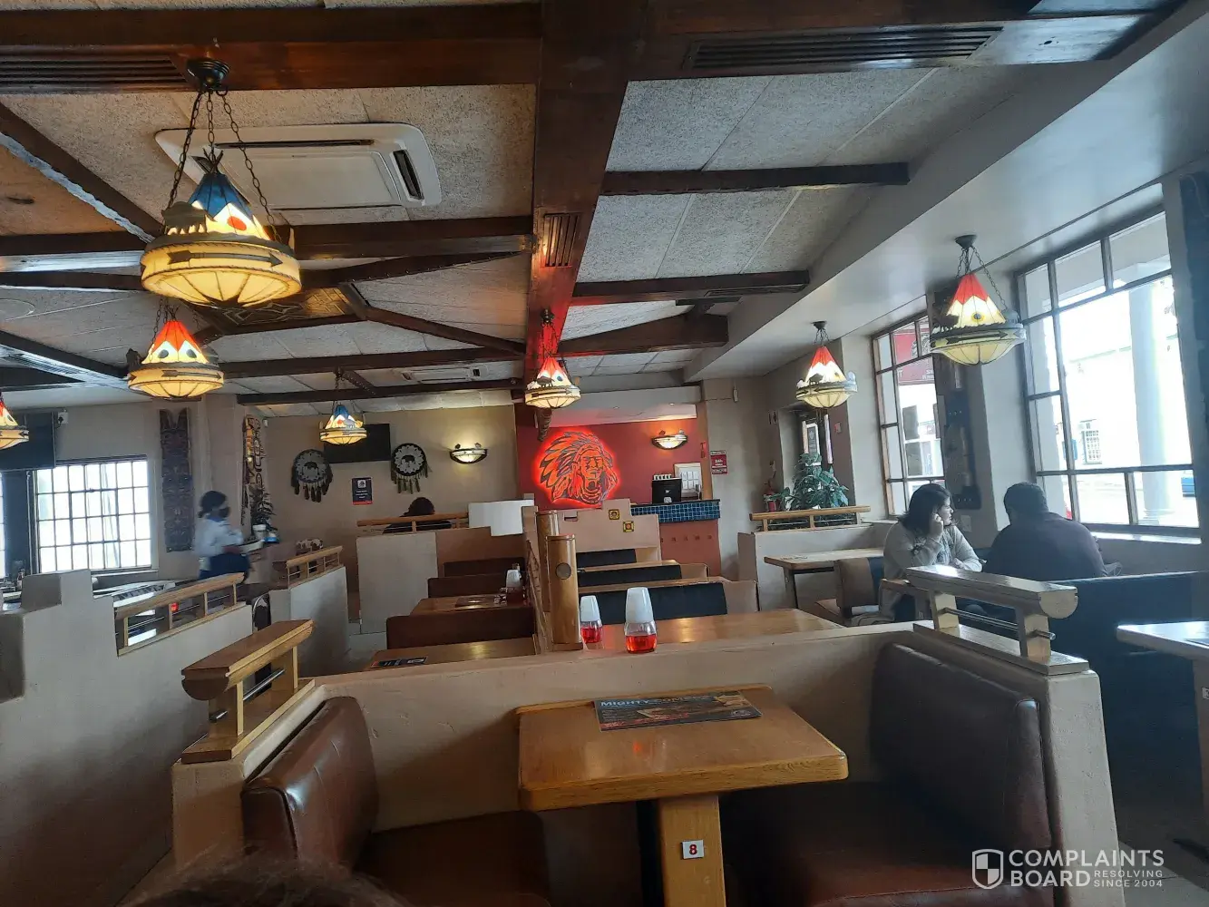 A man, appearing to be one of the managers was sitting at a booth with his laptop. Next to the booth we were seated in.