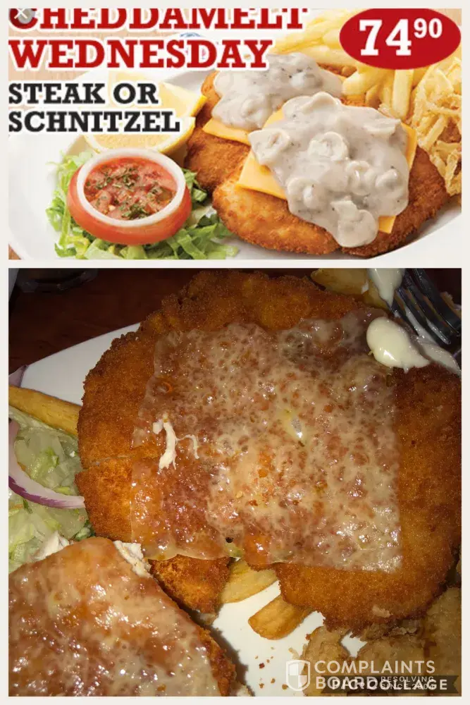 I ordered a Chicken cheddamelt schnitzel with creamy garlic sauce. What I got was not what I was used to. Dry chicken with a slice of processed cheese melted on top. I'm originally from South Africa and spent many wonderful nights at spur enjoying their delicious food. This was so disappointing.
