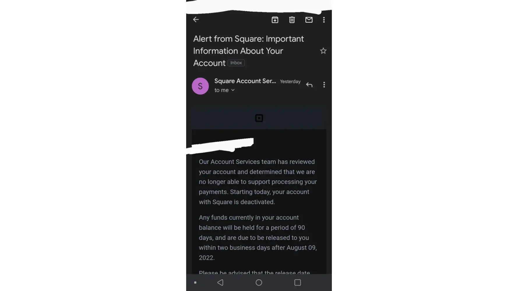 On May 10, 2022, I got an email stating that my account with Square was deactivated.