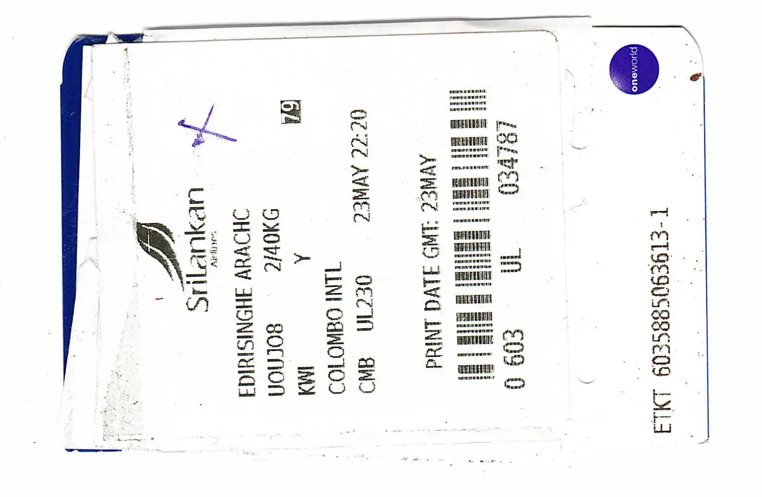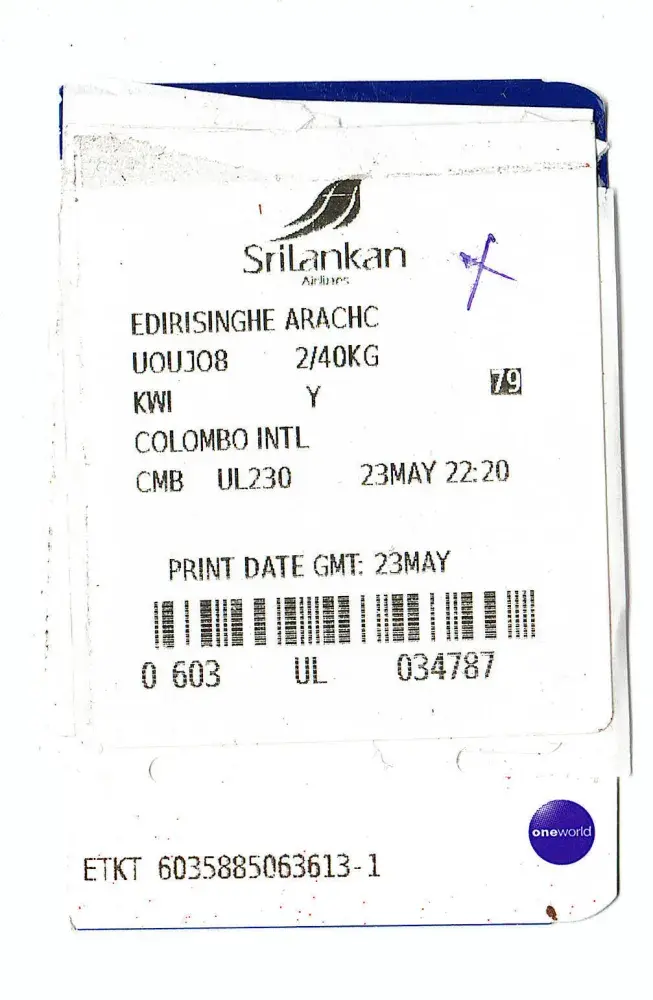 Passenger : Bollegala Arachchige Nalin Padmakumara Bollegala